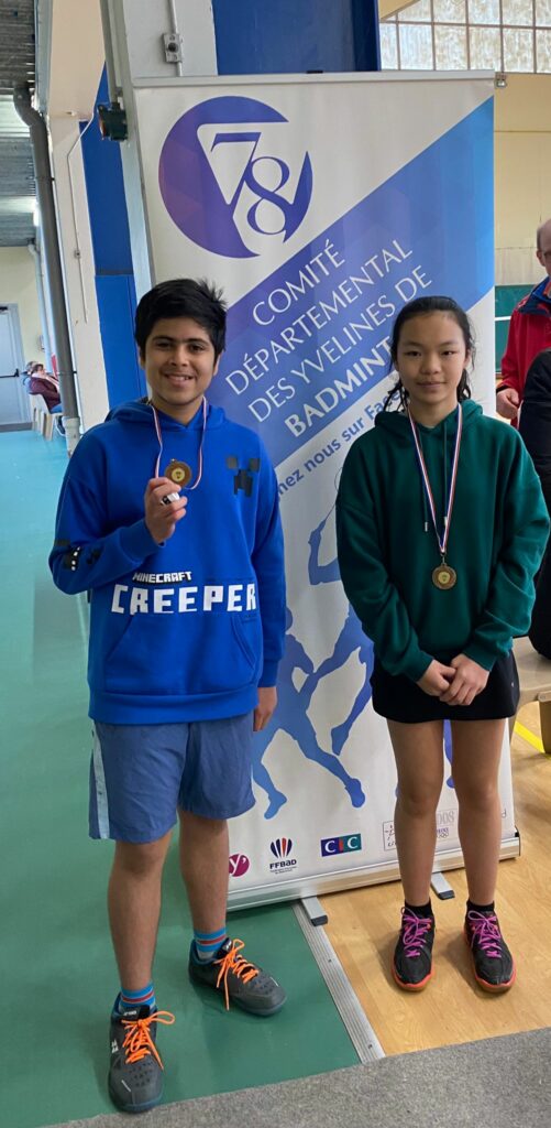 La belle performance venait de notre double mixte minime. Arnav et Mathilde associé pour la première fois dominaient de mains de maîtres la série 1 en remportant 4 victoires.