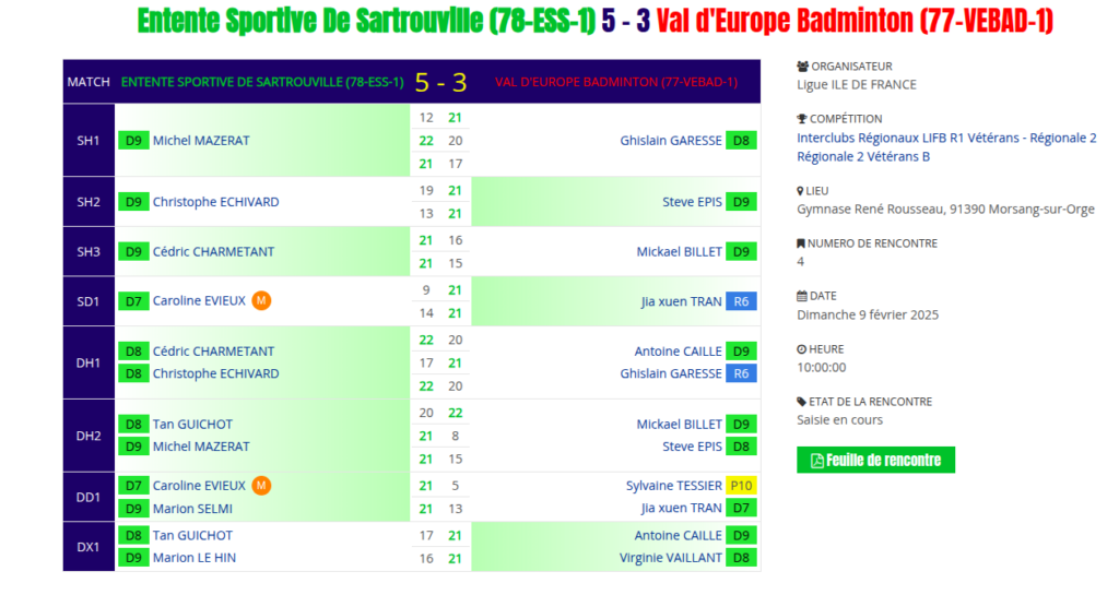 Régionale 2 vétéran : J4 – ESS78 vs Val D’europe